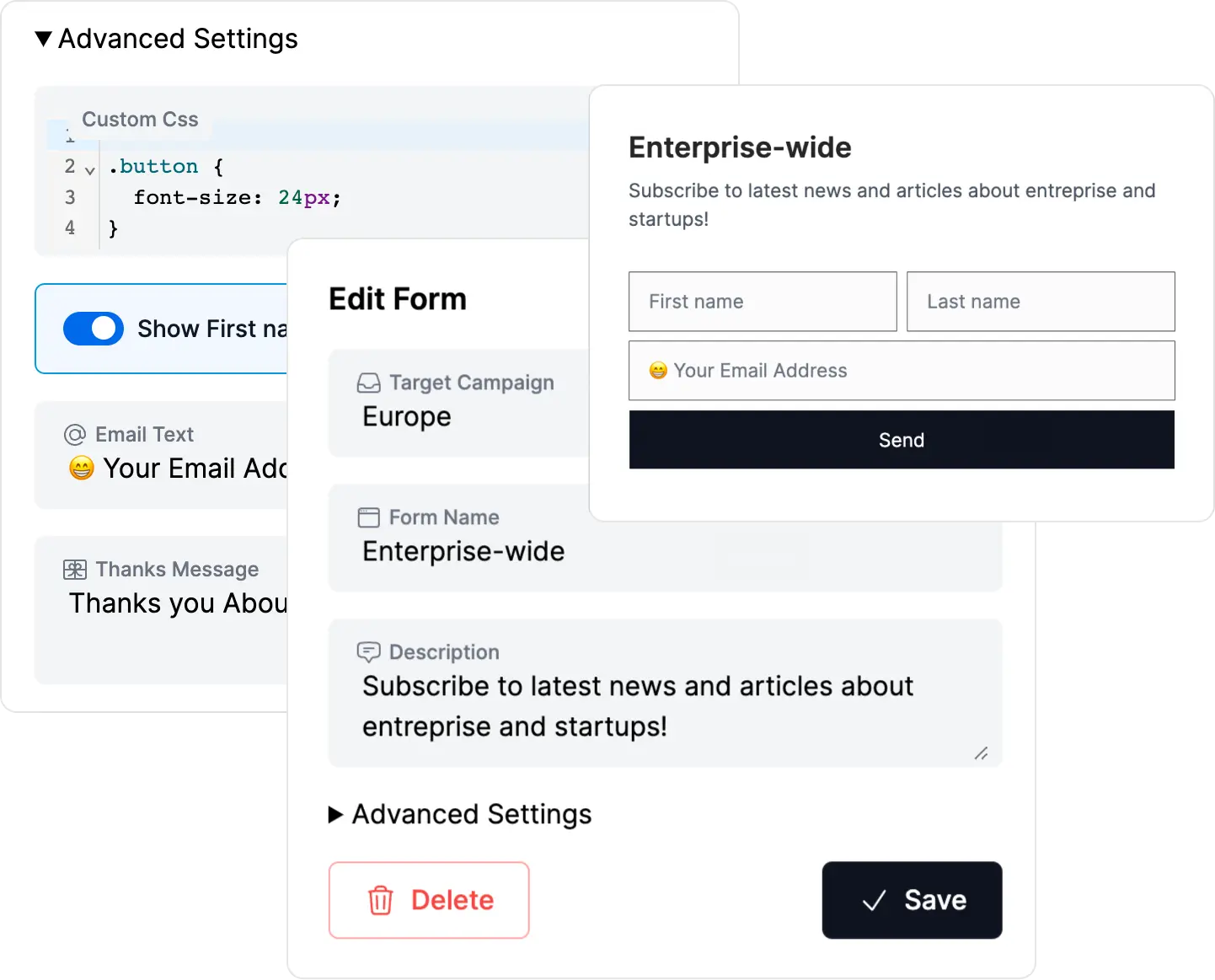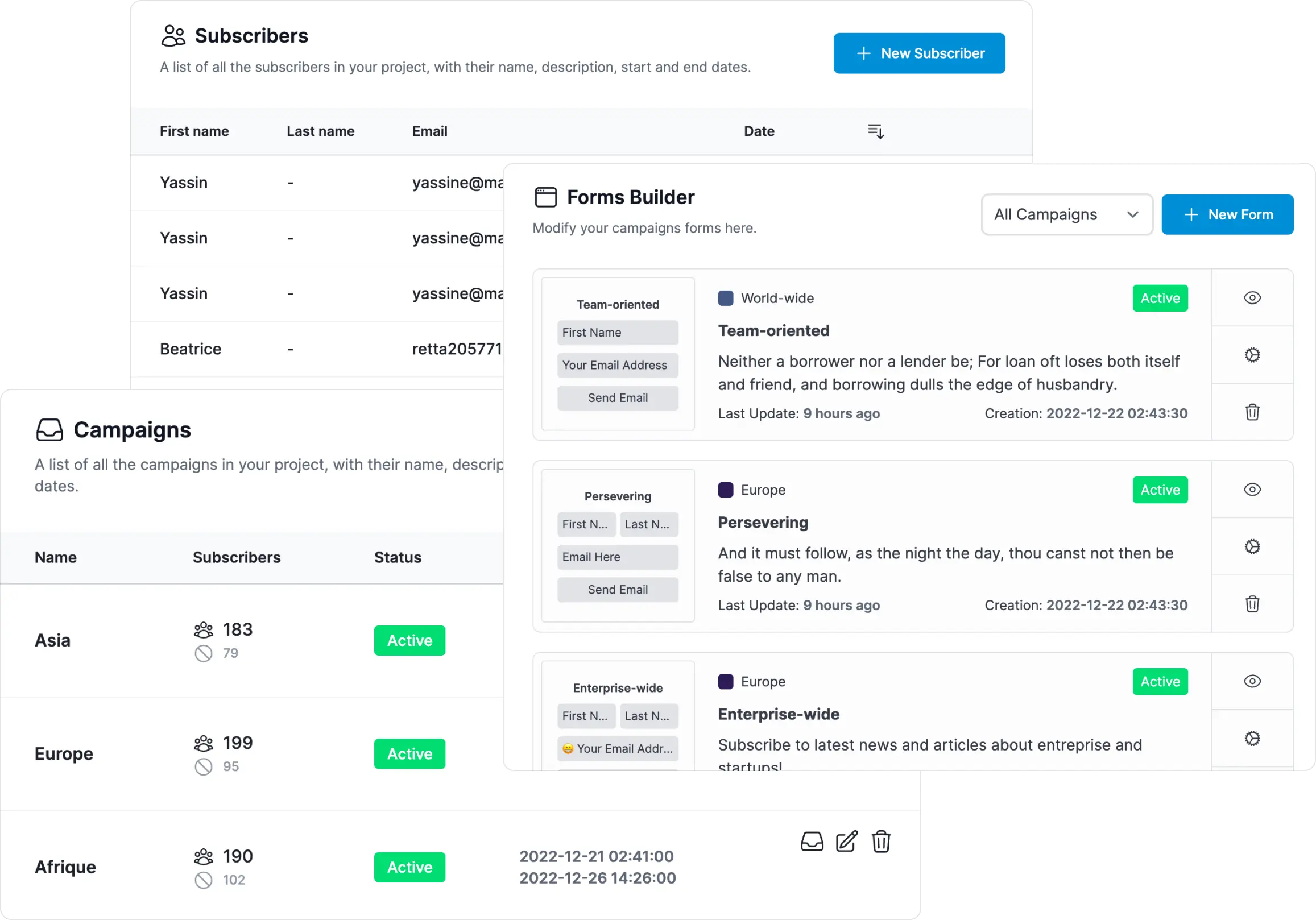Manage multiple newsletter and form campaigns within a single dashboard, making it easier to run multiple campaigns at the same time or switch between different projects quickly.