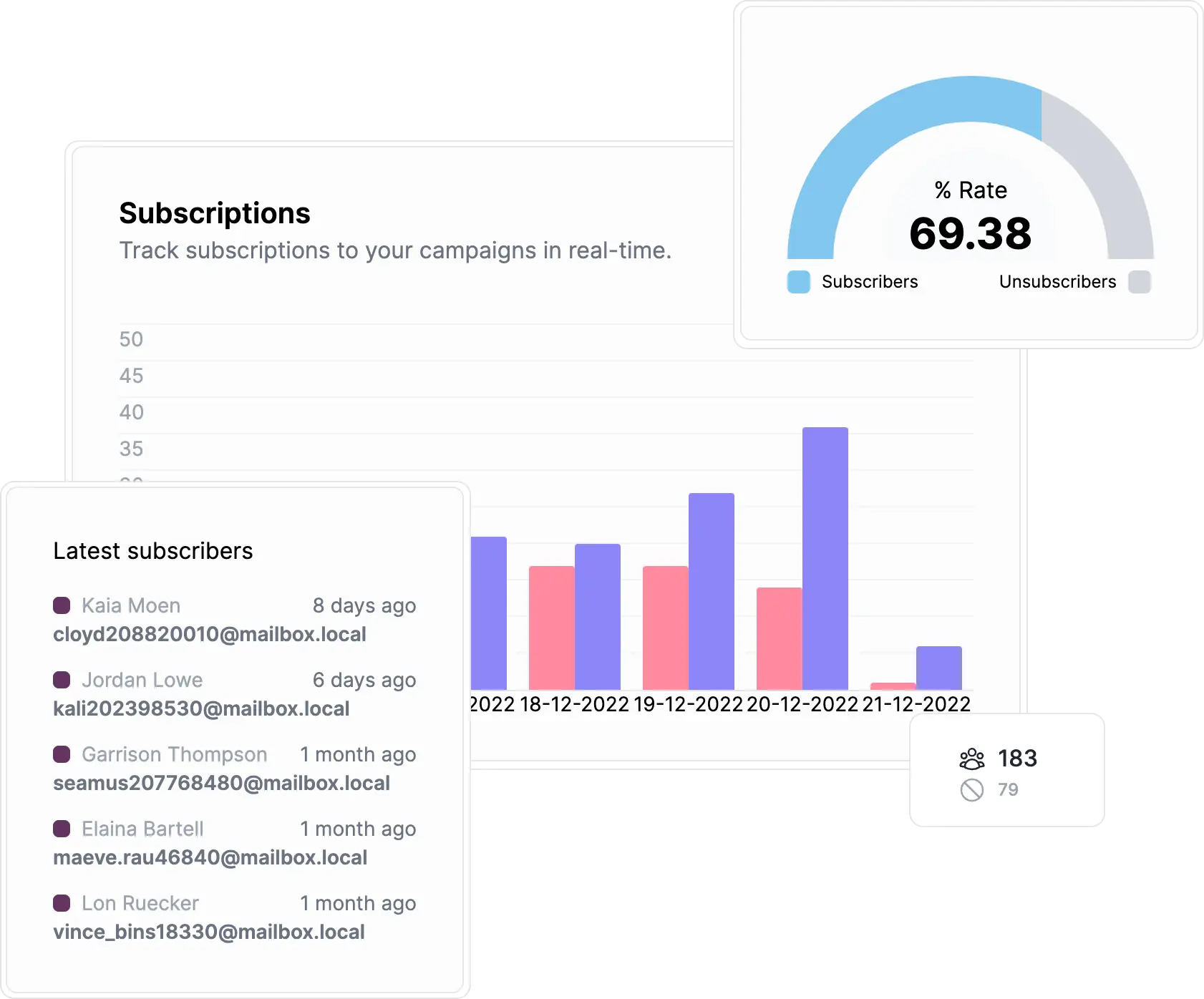 See real-time data on your newsletter and form campaigns, such as open and click-through rates, to understand the effectiveness of your campaigns and make data-driven decisions about how to improve them.